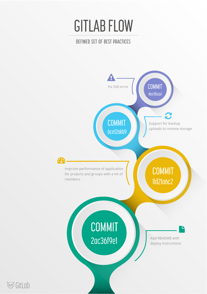 In reaction to git flow a simpler alternative was detailed, GitHub flow. This flow has only feature branches and a master branch. This is very simple and clean, many organizations have adopted it with great success. Atlassian recommends a similar strategy although they rebase feature branches. Merging everything into the master branch and deploying often means you minimize the amount of code in 'inventory' which is in line with the lean and continuous delivery best practices. But this flow still leaves a lot of questions unanswered regarding deployments, environments, releases and integrations with issues. With GitLab flow we offer additional guidance for these questions.