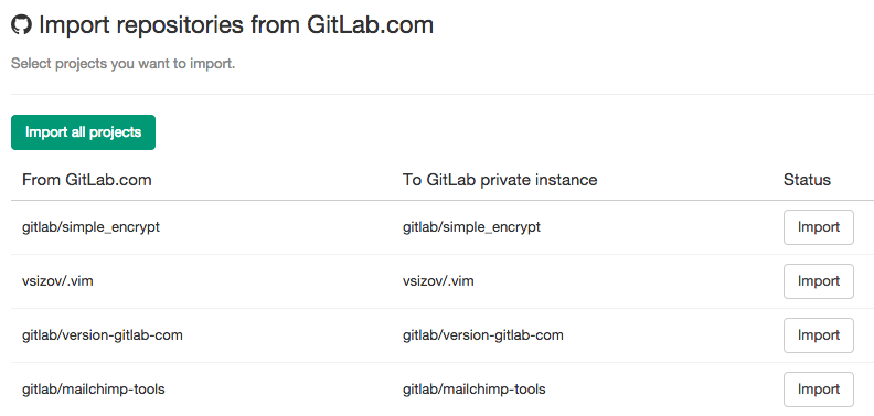 Project importing from GitLab.com to your private GitLab instance